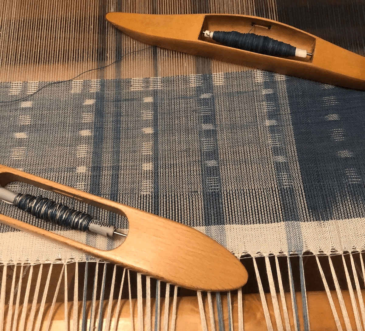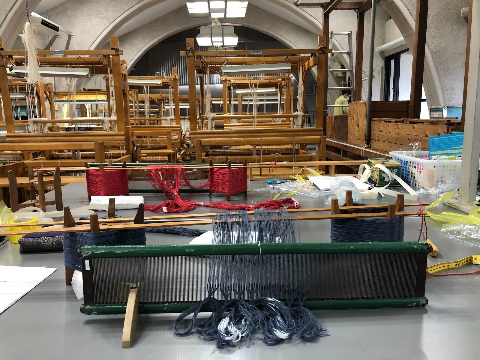 Under oppholdet mitt i Japan fikk jeg også besøkt Watabuns veveverksted og museum, der man kunne se verkstedet der de fortsatt håndvever obi-belter til kimonoer. Jeg fikk også besøkt Kawashima Selkon Textiles Factory som produserer vevde teaterforheng, og de har en av verden største vevstoler. Vi fikk også besøke studioet til veveren Jun Tomita.