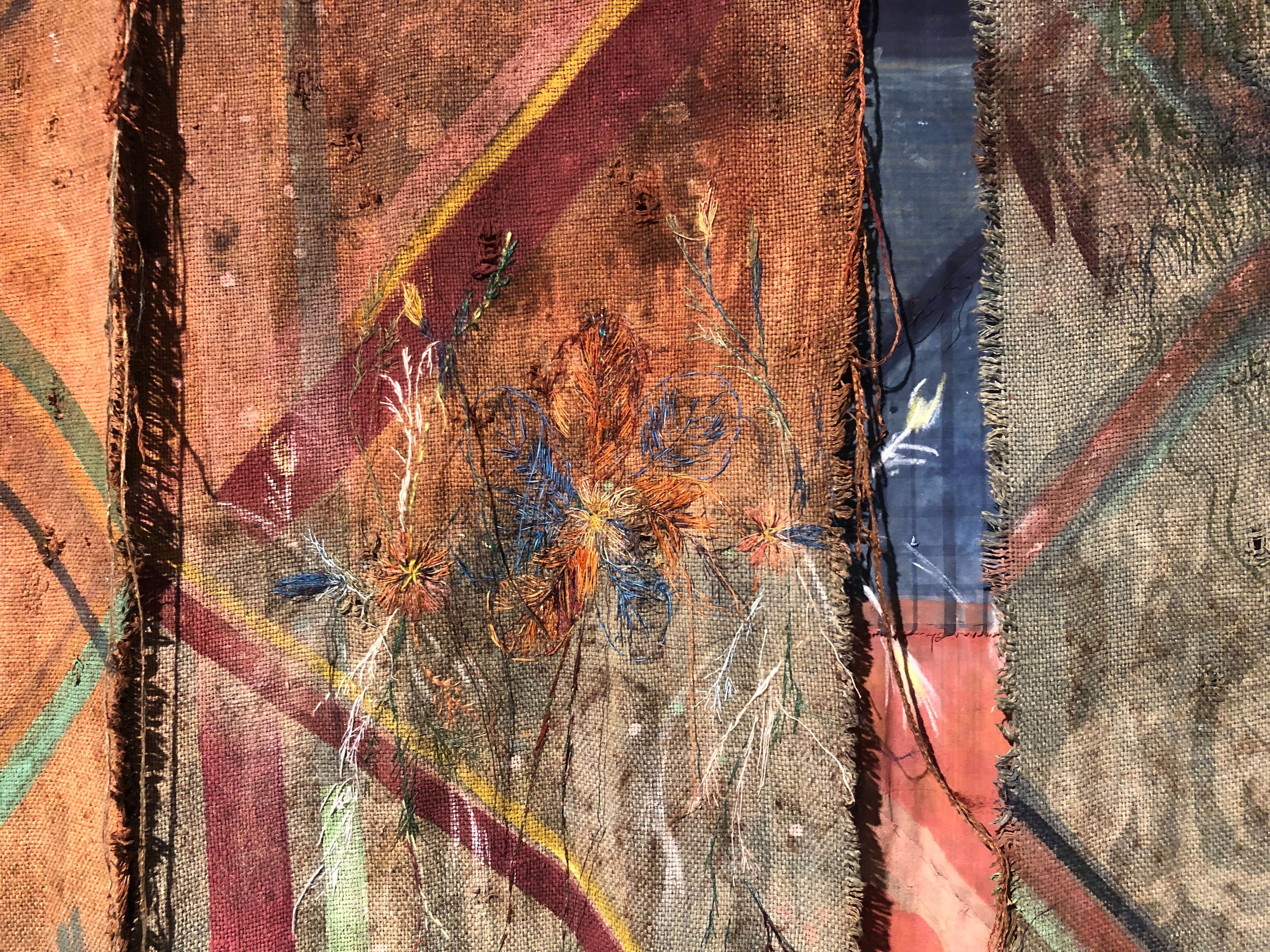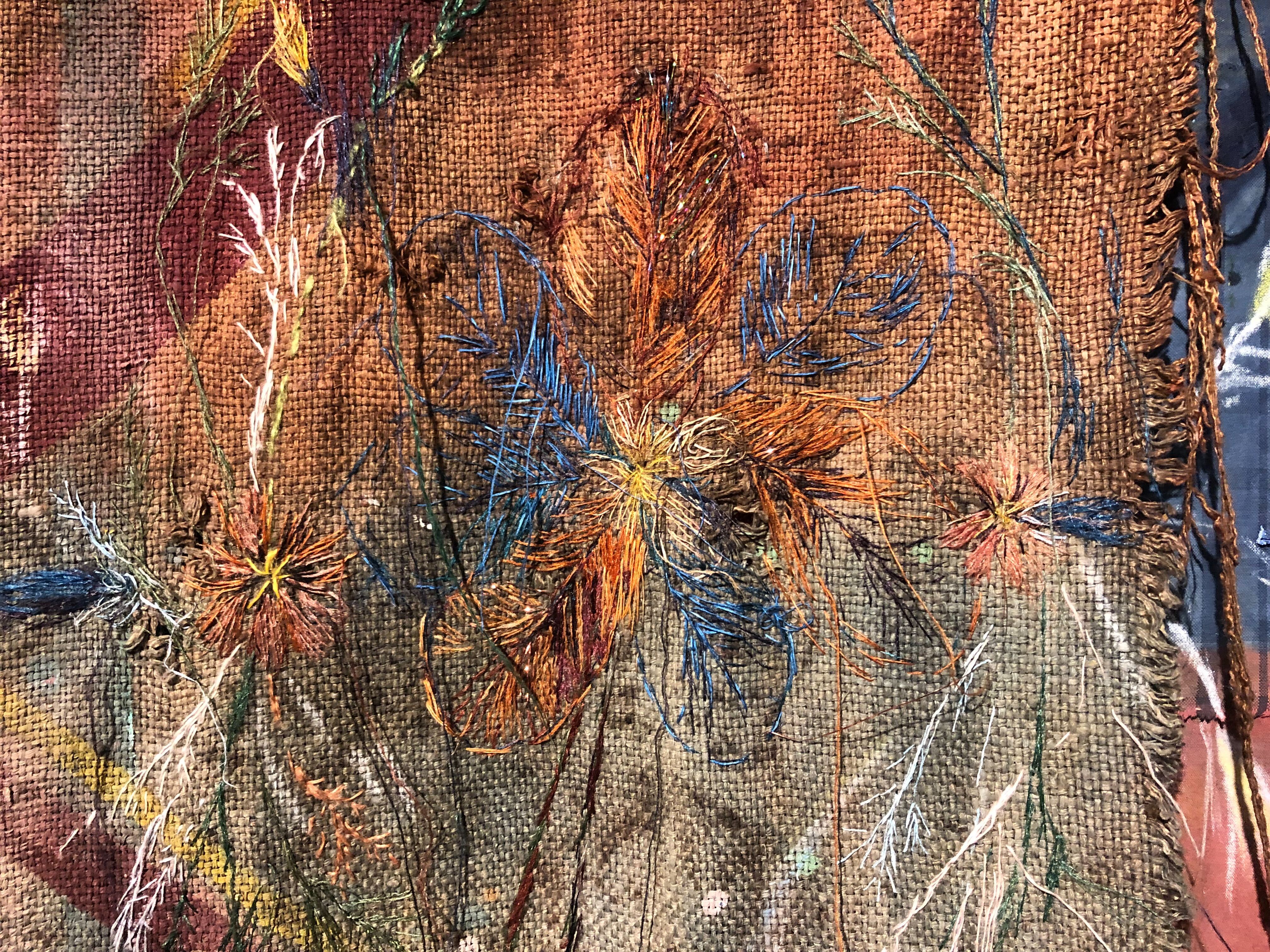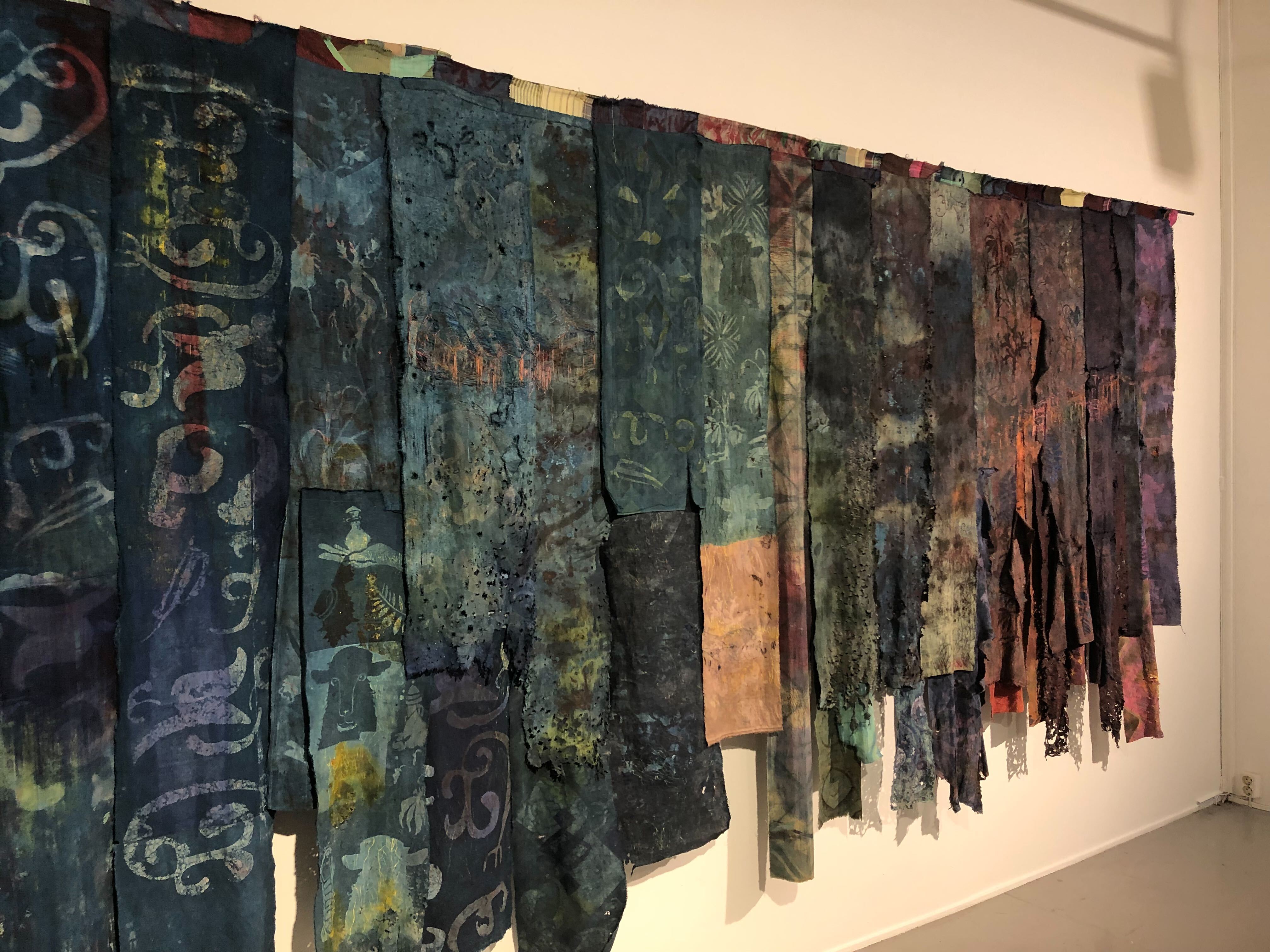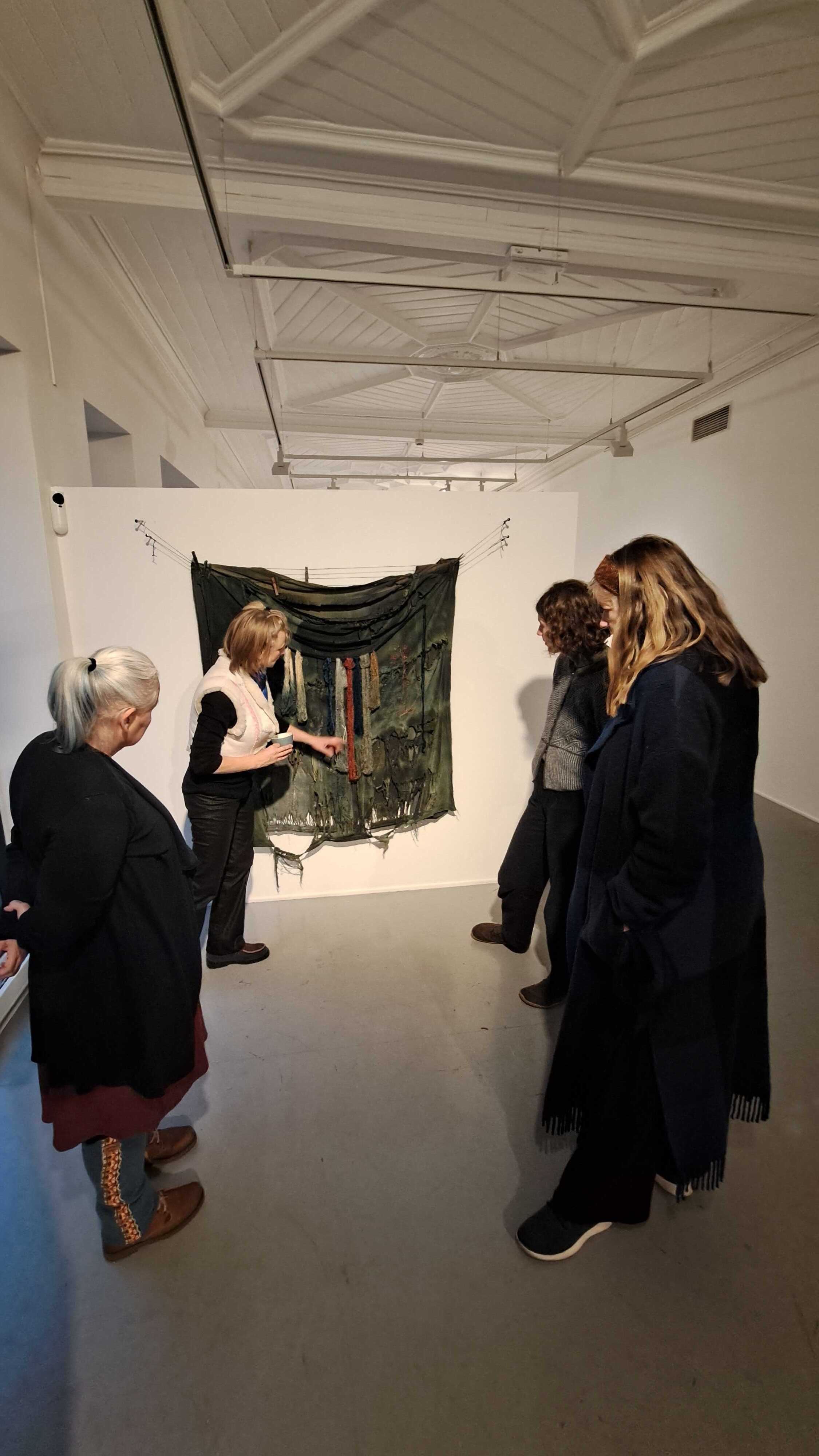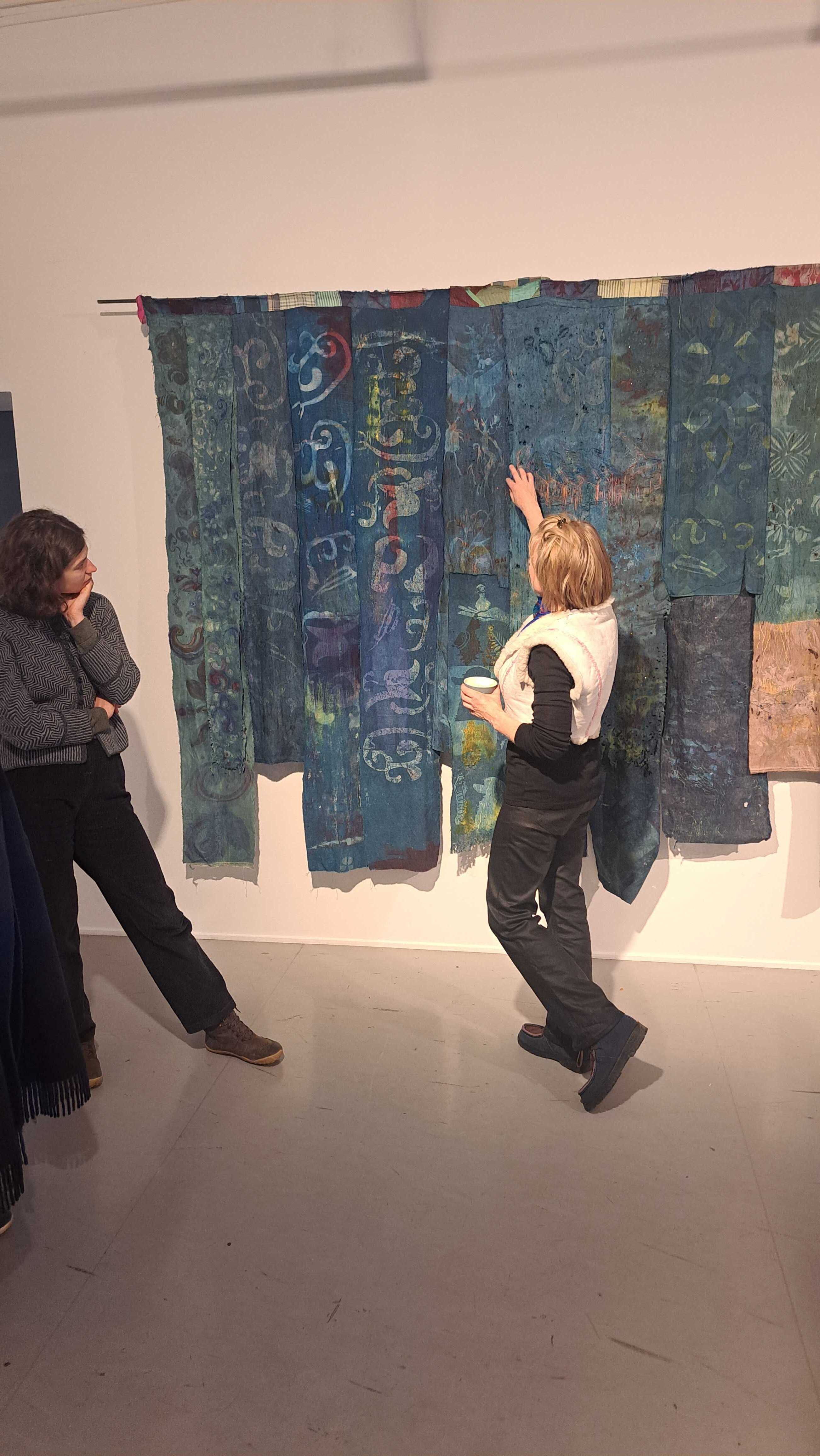 Videre dro vi til galleri Format, der Kristine Fornes viste oss sine verk, og forklarte både prosess og tanker bak. Det var fascinerende å høre om at det å jobbe med disse verkene hadde latt Fornes dykke ned i silkeveiens historie, og å jobbe med tekstiler og fargepigmenter som har utviklet den menneskelige sivilisasjonen. Verkene inkorporerte og utforsket mange ulike teknikker innenfor det tekstille feltet - reservasjonsfargning,- trykk, broderi, fargning med indigo og krapp, shibori osv.